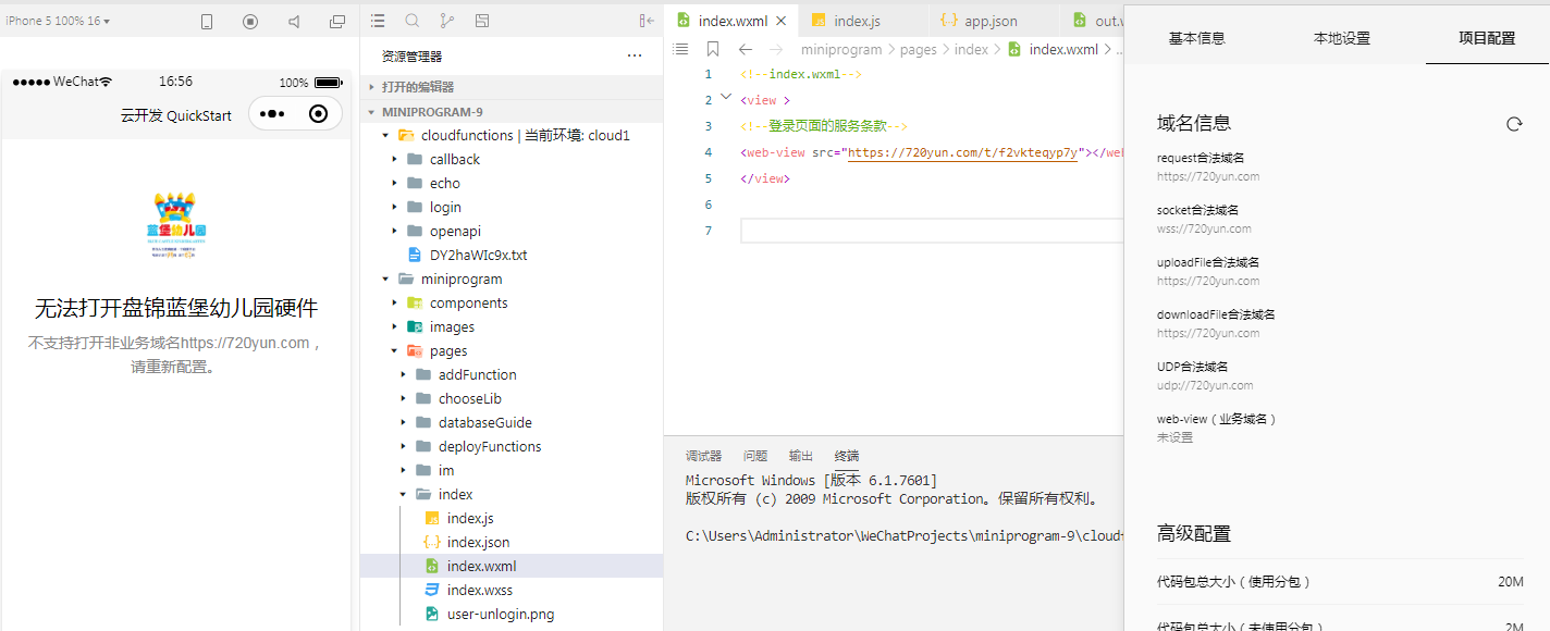 720yun的专业会员是可以加入业务域名的,所以业务域名可以解决,还有一种解决方案就是专业版可以导出离线全景包,然后自己部署。但现在小程序都会存在类目选择的问题吧。