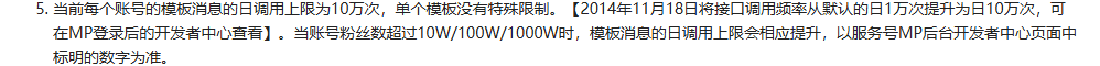 规则和限制:当前每个账号的模板消息的日调用上限为10万次,单个模板没有特殊限制。