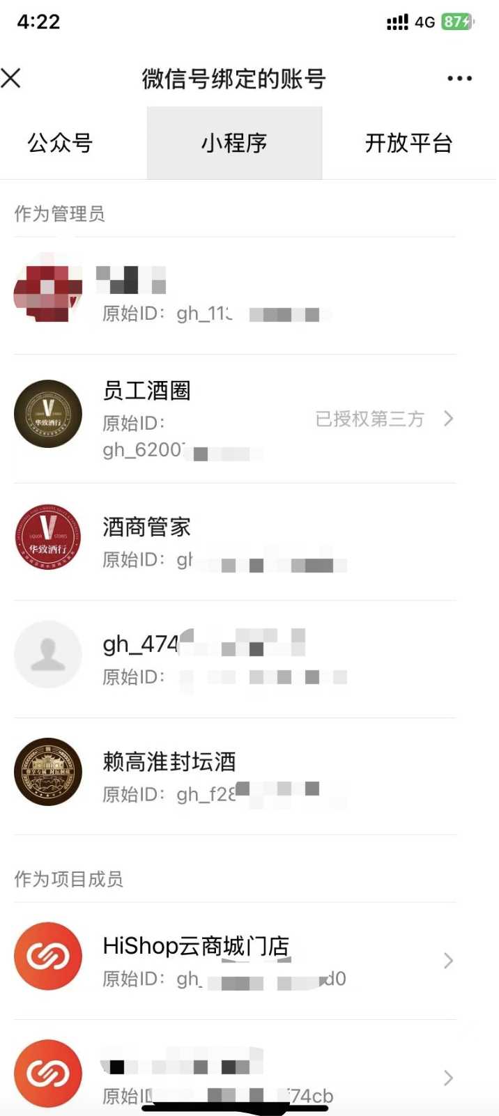 如图,第三方的appid为wx6934f25d36c1254e,小程序的appid为wx3196f1d737ce20fe