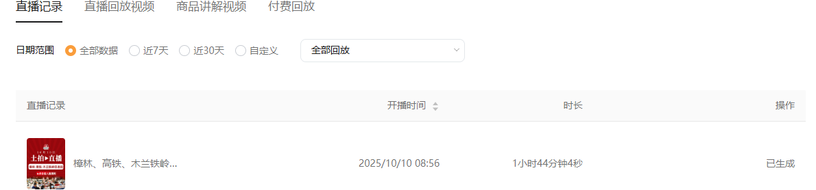 直播时长有1小时44分钟4秒,回放的只有10分钟,能不能解决?视频号id:sph9EpqEYW1goKD