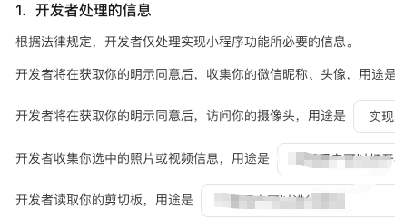 体验版加上了__usePrivacyCheck__,还是报这个,剪贴板报错信息: {"errMsg": "getClipboardData:fail jsapi has no permission, event=getClipboardData, runningState=foreground, permissionMsg=permission got, detail=jsapi has no permission, appId=;, "errno": 102}