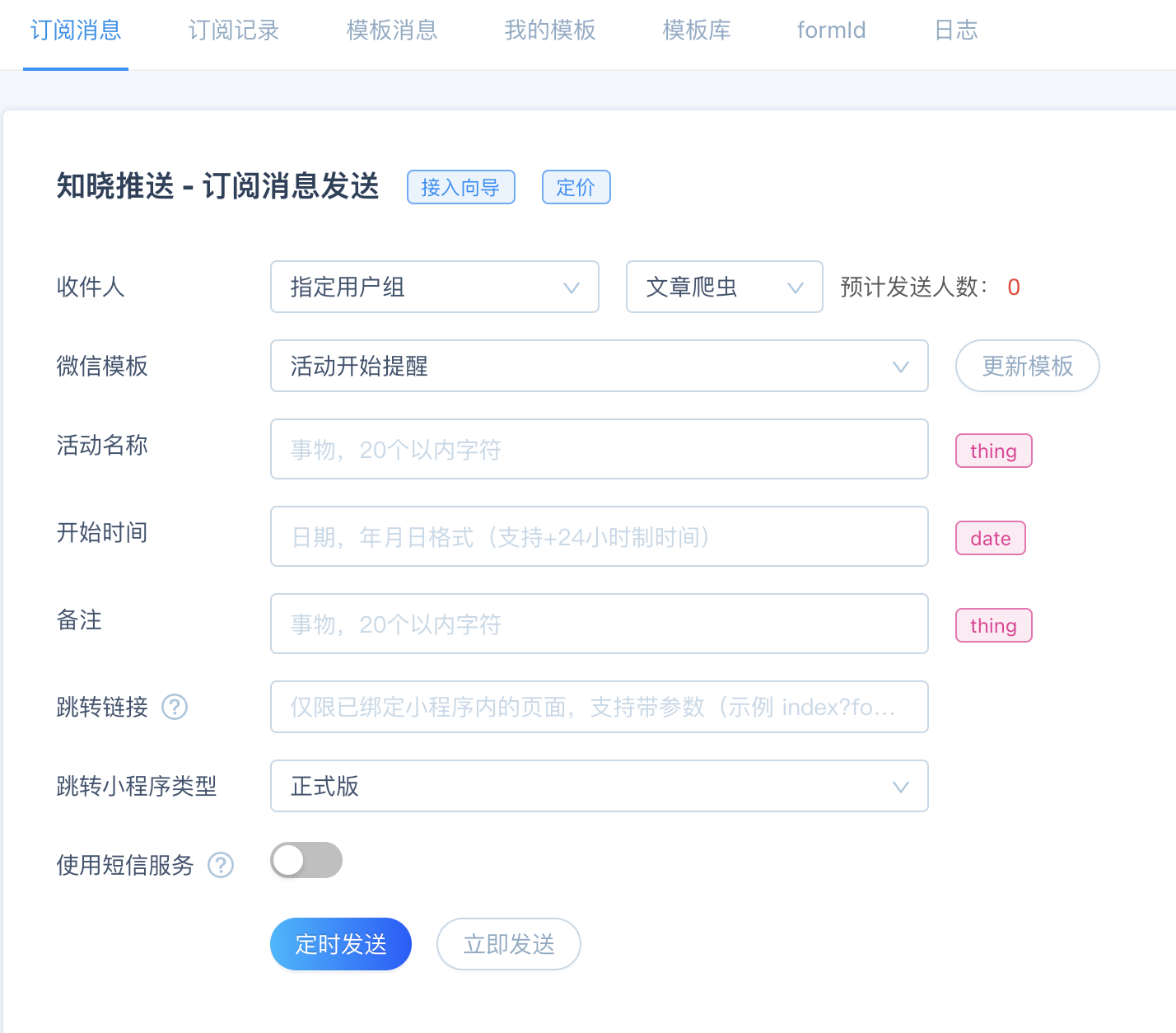开发文档:https://doc.minapp.com/support/practice/subscribe-message-course.html