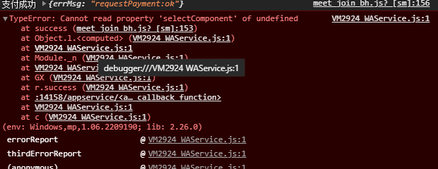 这个提交事件我是先进行支付,想着能不能支付成功之后直接回调到this.selectComponent方法,去执行本地函数的方法