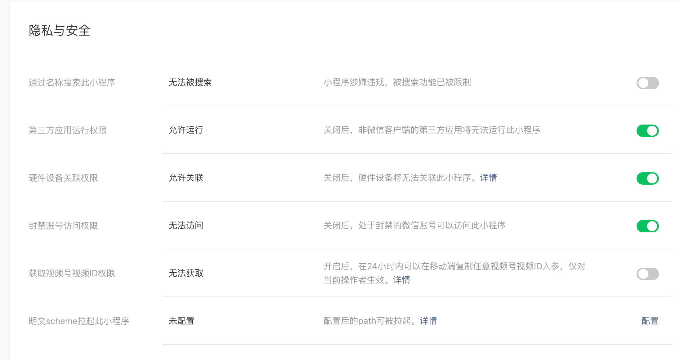 你好,经核实,账号涉及备案问题,点击版本发布,线上版本有小程序状态,悬停有展示原因。