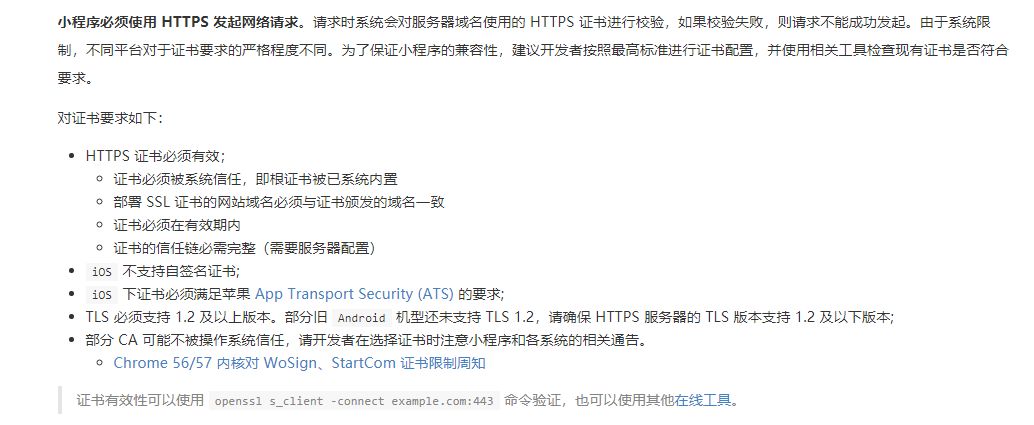 建议检查下证书:,文档:https://developers.weixin.qq.com/miniprogram/dev/framework/ability/network.html