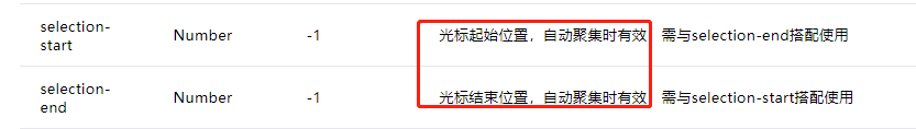 <input placeholder="点击的时候聚焦" value='123123' data-value='123123' data-name="focus1" focus="{{focus1}}" selection-start="{{SStart1}}" selection-end="{{SEnd1}}" bindtap="BindInputFocus" bindfocus='BindFocusInput' bindblur='InputBlur'/>