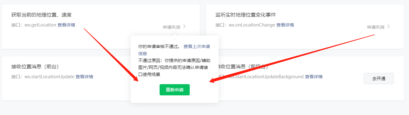 你所描述的场景属于附近门店、网点、XXX的场景,此类场景现在基本不允许使用wx.getLocation,只能换成wx.chooseLocation。去换吧。