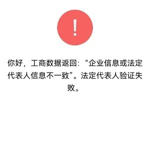 状态:工商数据返回:“企业信息或法定代表人信息不一致”。法定代表人验证失败。