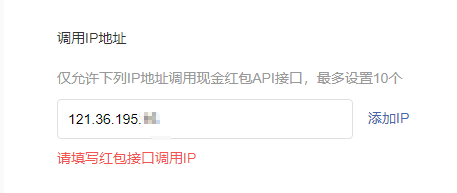 在申请现金红包的时候 调用IP地址处 填写了正确的IP地址 还是提示 请填写红包接口调用IP 是什么问题