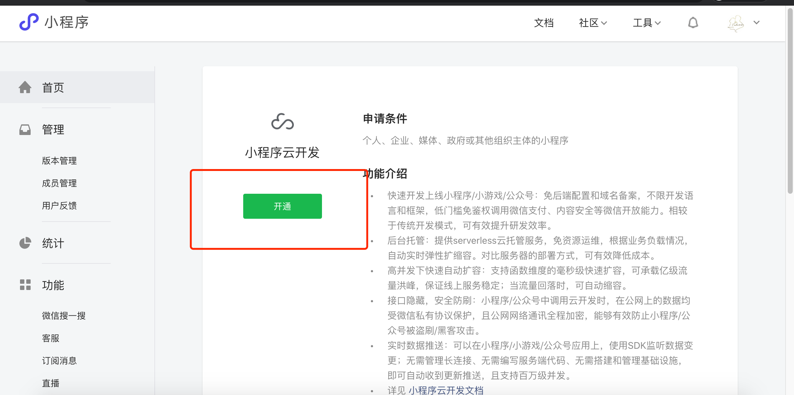 好像重新开通云开发也开通不了,什么情况呢??原来云开发环境中保存着各种素材,怎么回事。