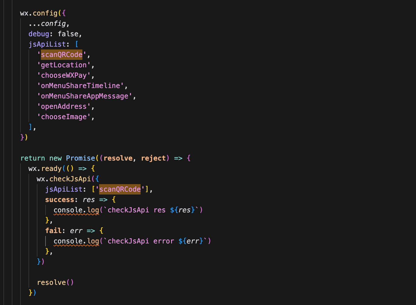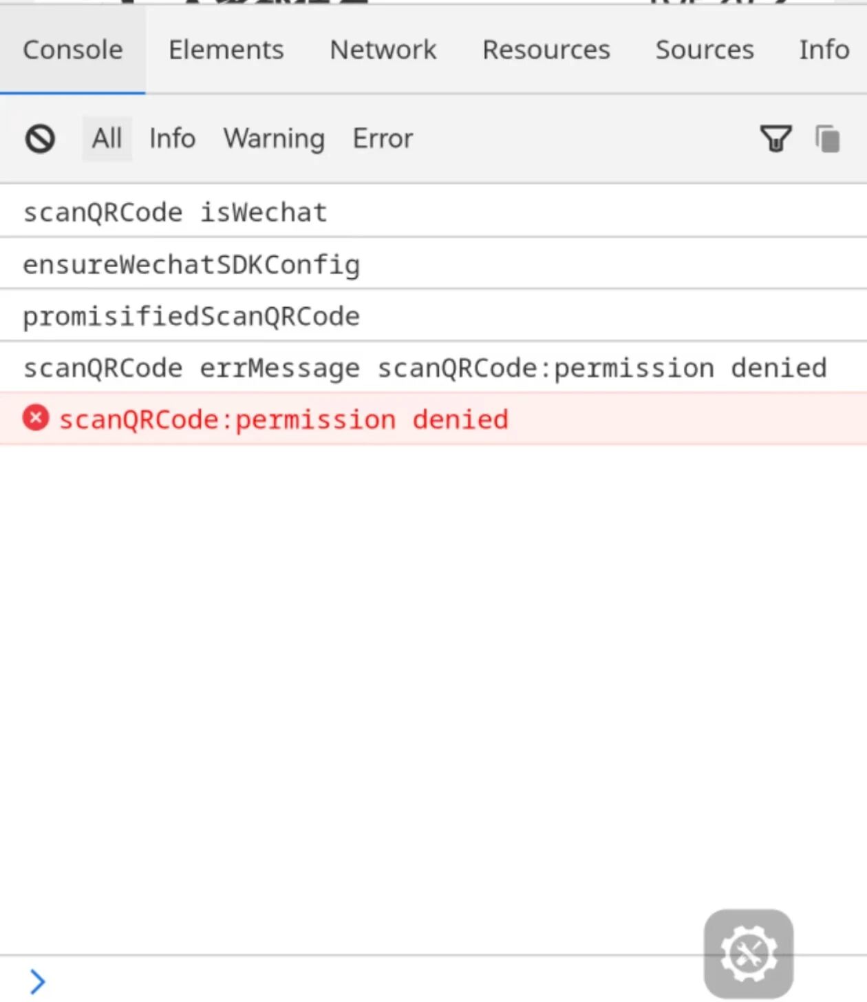 打开鸿蒙原生微信小程序后,配置初始化微信,wx.ready 中调用 checkJsApi 检查 scanQRCode 接口后返回报错 {"errMsg":"checkJsApi:fail localparameters"},小程序首页可见后直接调用 wx.scanQRCode 后报错 permission denied。然而此时如果再重新刷新页面(window.location.reload()),以上两个接口都恢复正常了。