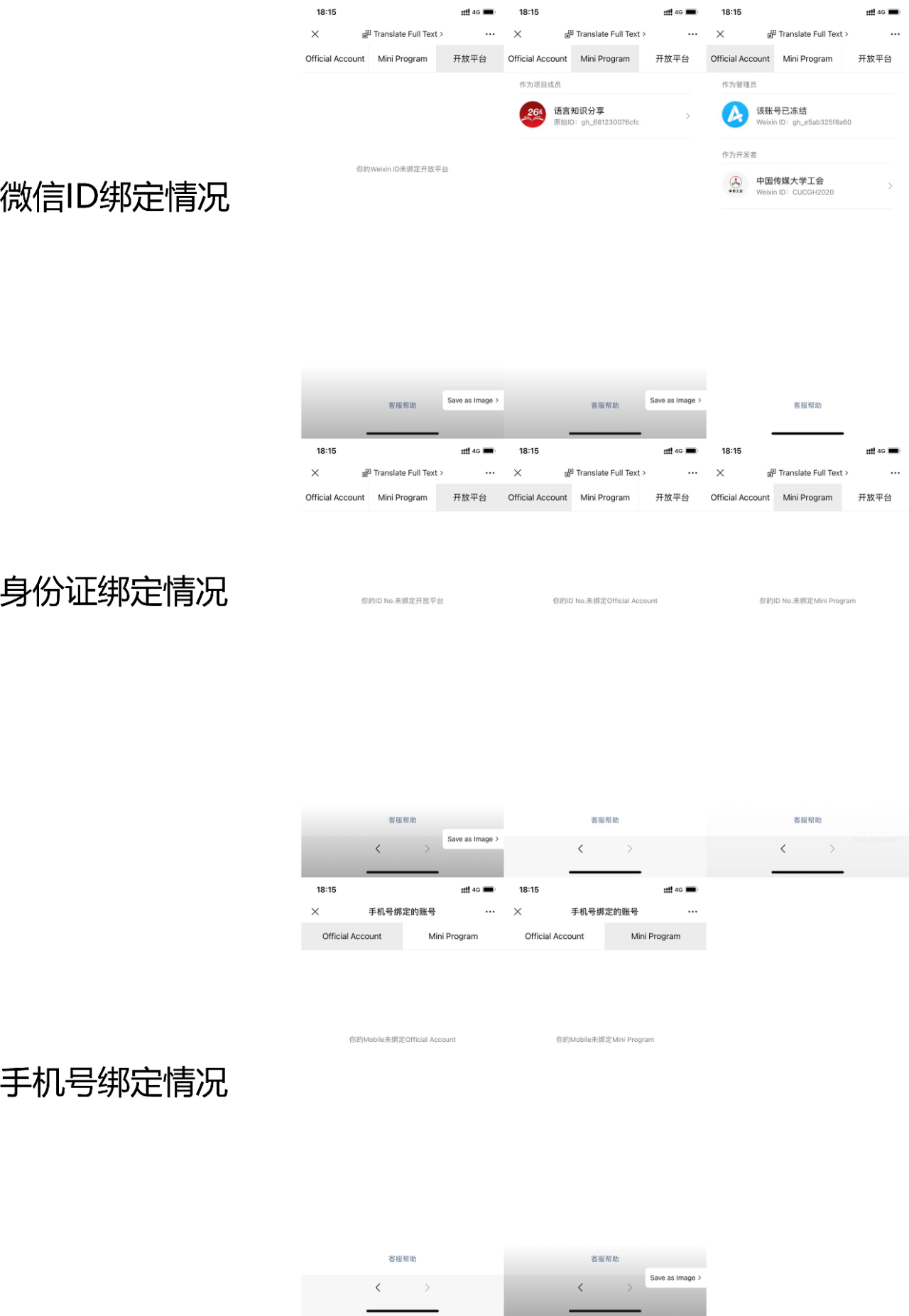 下面是我所有身份证、手机号、微信号绑定小程序和公众号的情况,加起来都没有5个