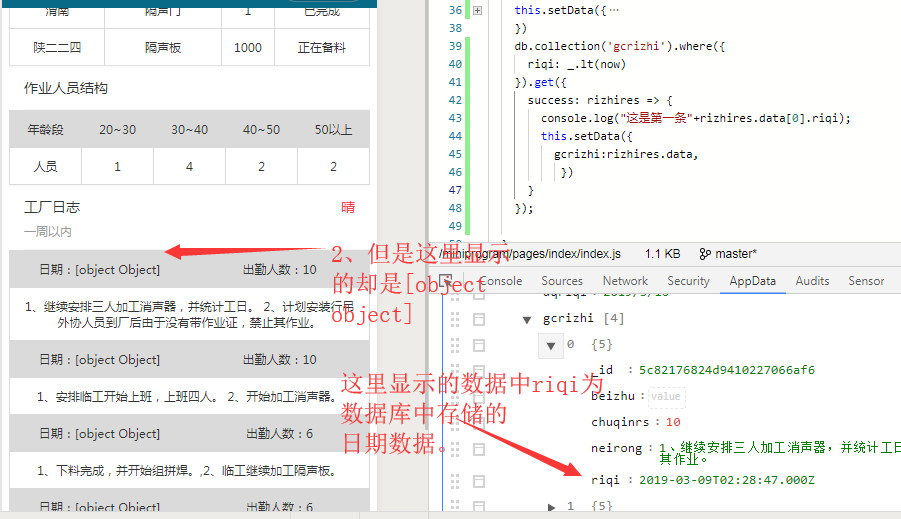 数据库中的存储的date类型数据。通过js将数据提取后存入data中,从调试台能看到取到的正常date数据,但是在页面中显示为[object object],但是非date类型的数据输出正常。
