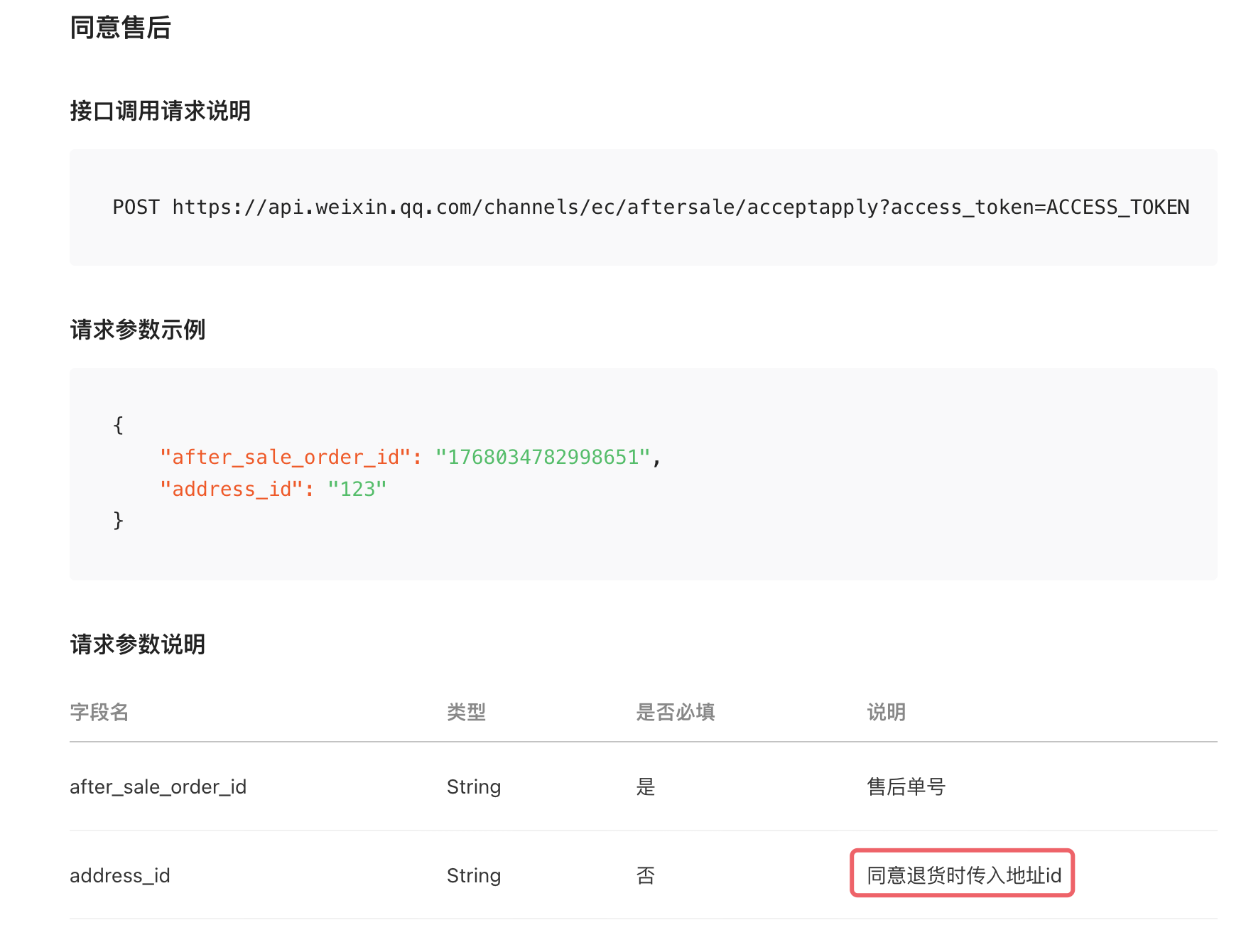 WxVideoRefundAgreeResponse(errCode=10021058, errmsg=退货需要传入收货地址的address_id ) 微信接口报错