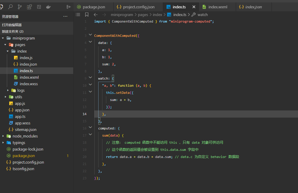 用ts创建项目之后下载miniprogram-computed,根据文档导入