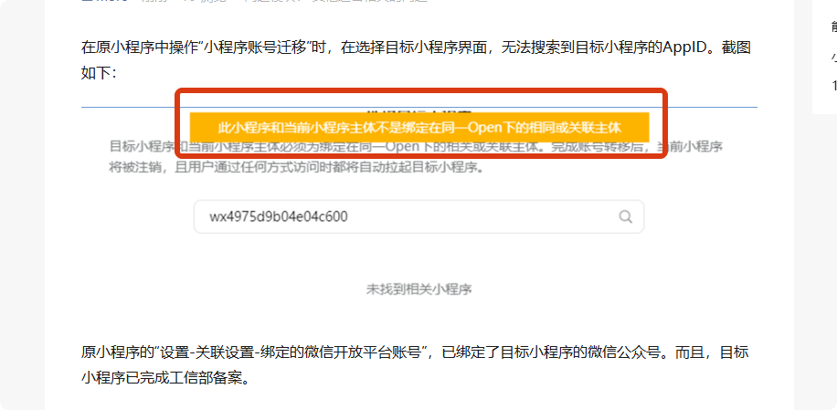 所以,想请教为什么“小程序账号迁移”时,无法搜索到目标小程序的AppID?目标小程序的AppID是:wx4975d9b04e04c600。