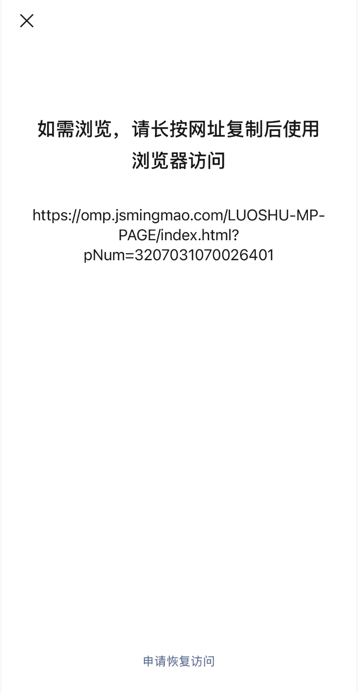 小程序配置了普通二维码,已经用了很久,普通二维码在微信里识别跳转出请复制链接到浏览器使用。但是用扫一扫可以跳转到小程序,因为很多都是保存图片到微信里使用的 现在跳转不到小程序里 。申请恢复访问立马就能跳转 但是第二天就还是要到浏览器访问。比较着急 希望能得到解决