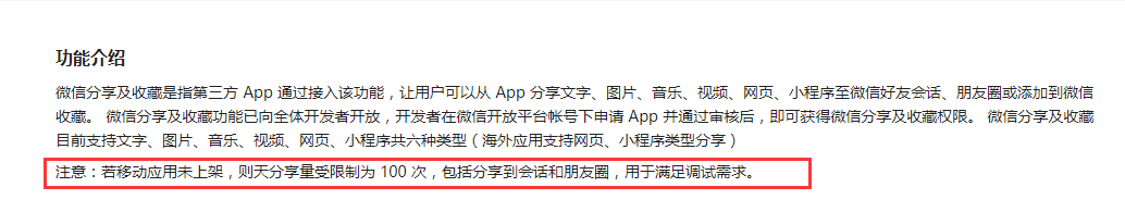 未上架的应用,分享和拉起小程序的次数有限制,最多只能 100次/天。