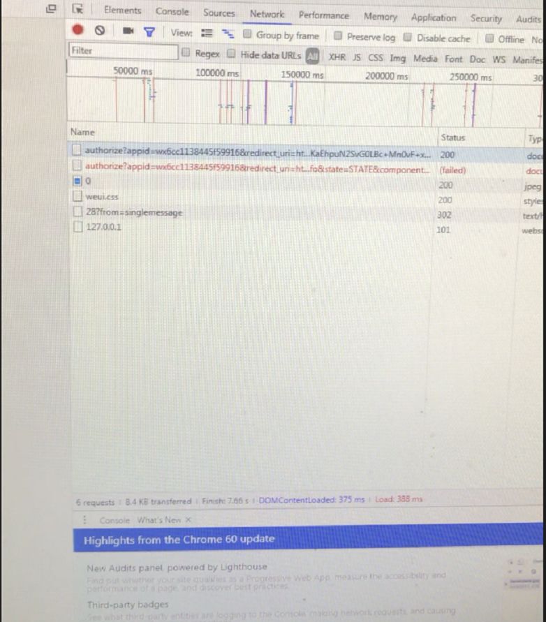 授权的时候有一处红色报错,不晓得是不是这个问题导致的,跳转的时候一闪而过,所以也无法点击查看报错的详细内容。。