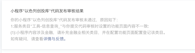 怎么还是因为金融类目没通过审核啊,我们真的没有金融相关的东西啊!!!拜托审核专员看清楚分辨清楚啊,我们的功能只是查询以色列的创业公司信息,只是有些公司是做金融的而已啊!!我们是完全和金融一点点一丝丝的关系都没有啊!!
