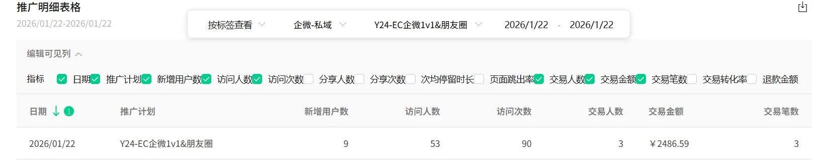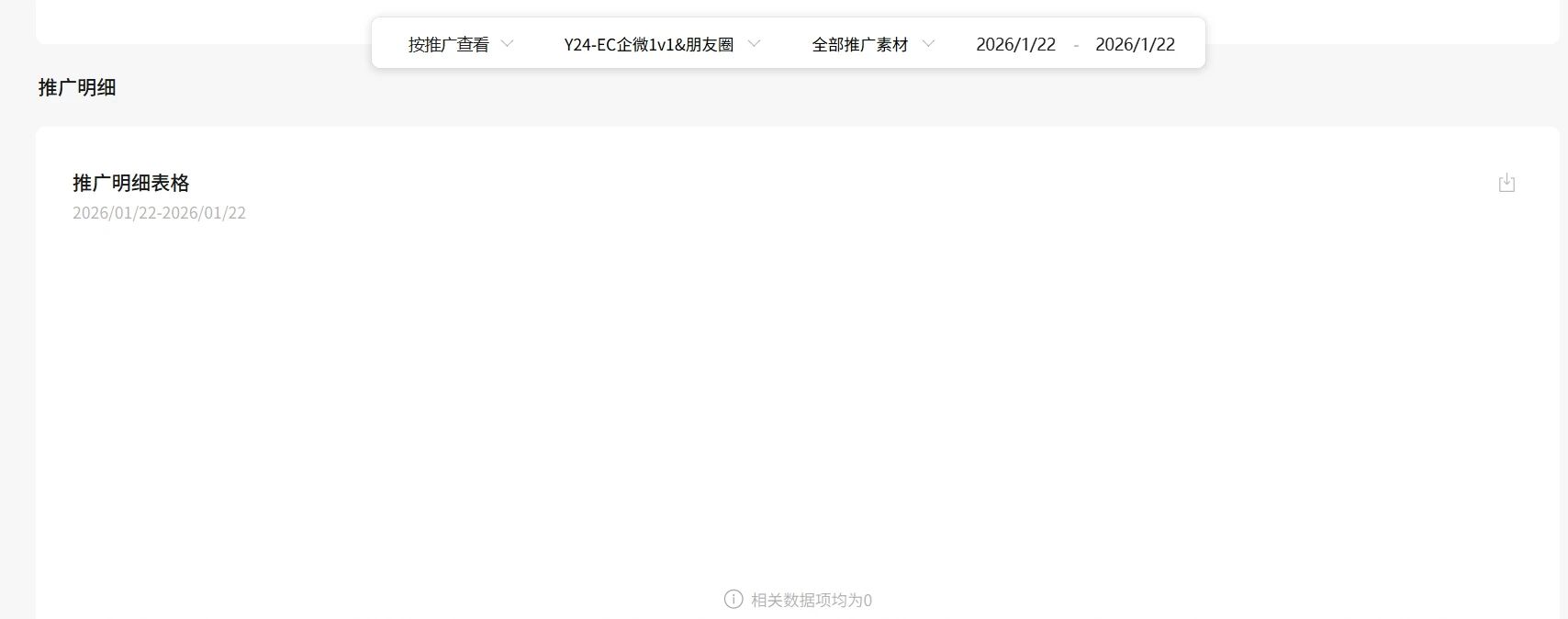 26年1月23日,我们的一条推广分析 通过筛选标签的方式可以看到22日有转化和访问数据,但我们通过推荐素材找到这条素材,又显示无任何数据,这是什么原因,是否数据未更新完全呀?