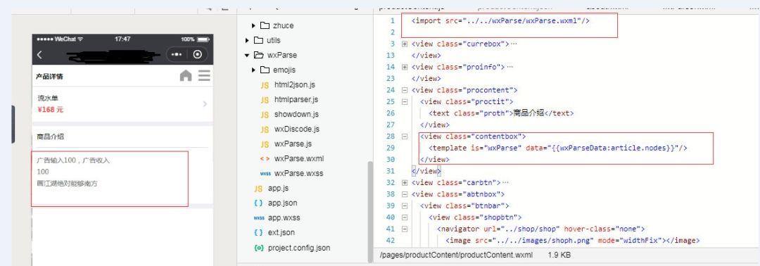已经找到,因为app.wxss 里面需要引用wxparse.wxss