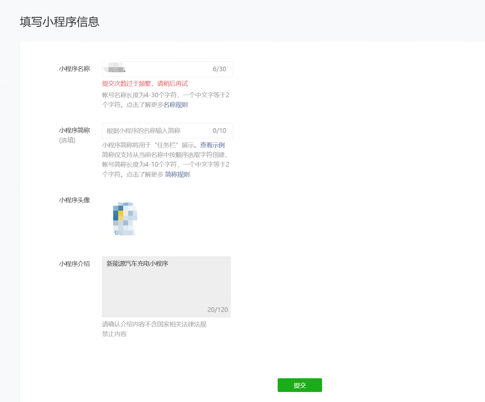 小程序输入名字的时候,发现很多名字都重名了,无法使用。所以提交的次数有点多。