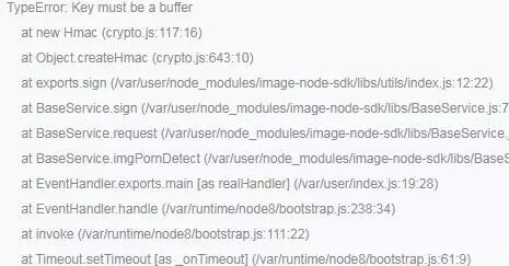 那文档我貌似也看到了,不行啊,而且到云开发控制台查云函数日志的时候,也显示Key must be a buffer![]()