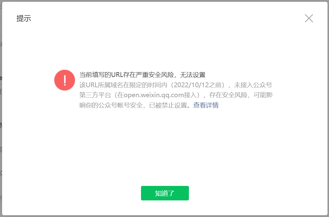 微信公众号后台设置服务器地址(URL)时,报:当前填写的URL存在严重安全风险,无法设置。
