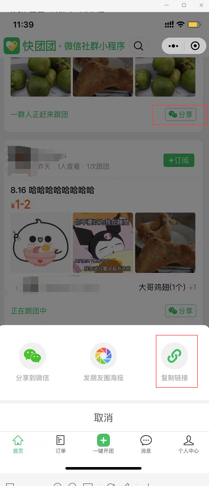 分享出来的链接如下:8.16 喜喜-已结束-团管理#小程序://快团团/点击跟团/FKOF7jGvMptguBq