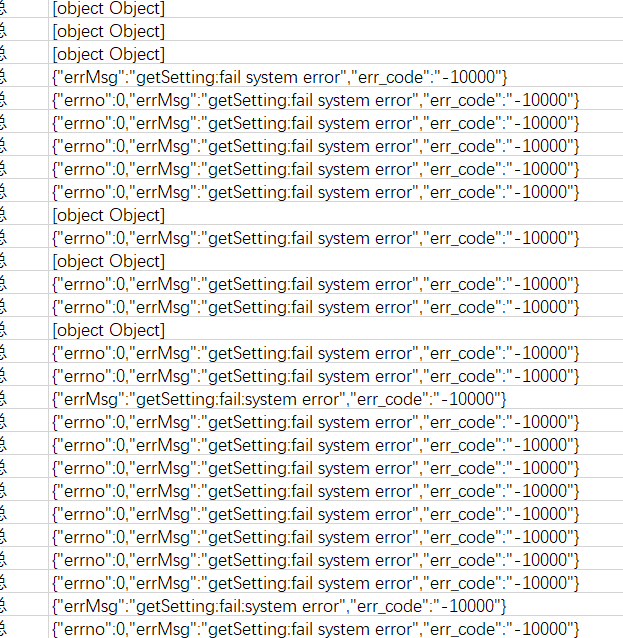 {"errMsg":"getSetting:fail:system error","err_code":"-10000"}