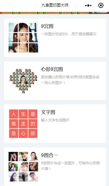 用户上传照片,切成朋友圈九宫格形式,用于发朋友圈
