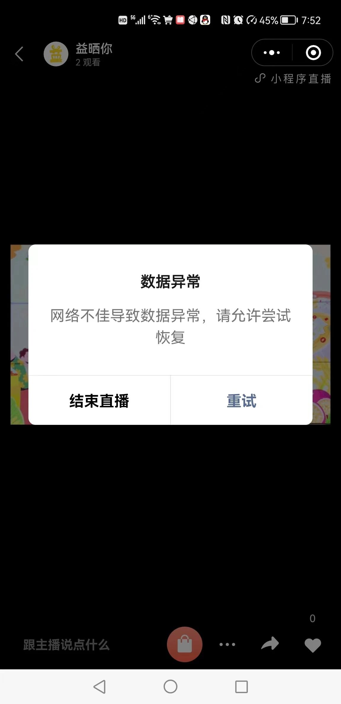 今晚测试直播,有很多人手机出现网络异常,无法进入直播间,总观看人数在20人左右