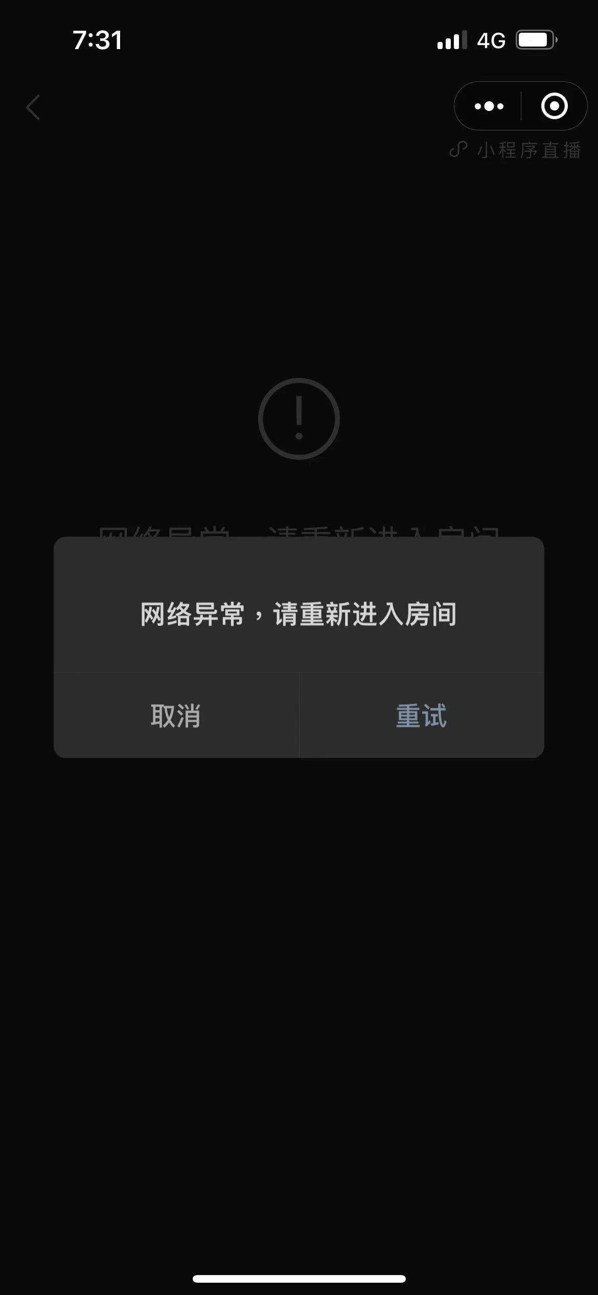 测试期间,反复尝试了WIFI和4G都无法打开直播,现在都不知道正式上线那天出现问题要如何处理了