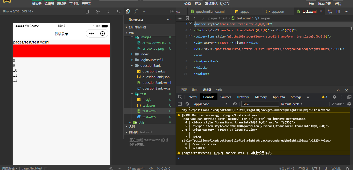 </view> </swiper-item></swiper>然后给bottomBox一个position:fixed;bottom:0;无效