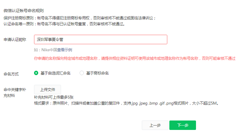我这个名称2017年注册的,一直在使用中,近期要开通微信支付,需要认证,结果提示这个;怎么解决呀?前面也同样带有一级地域名的,我们也认证几个,没问题啊。