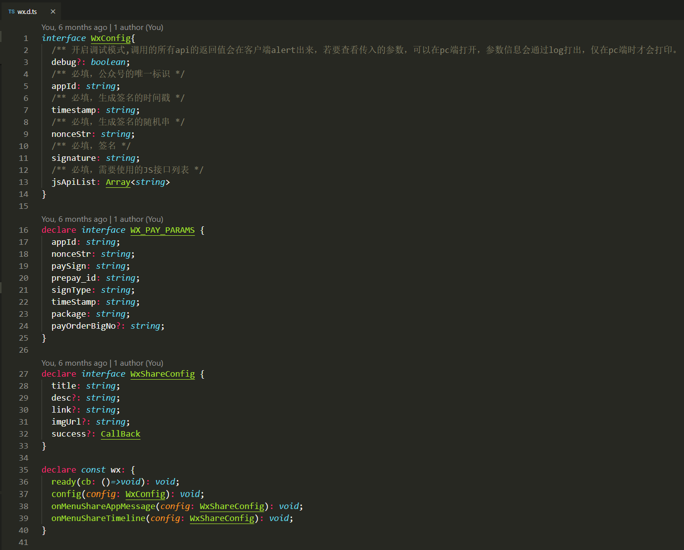如图,是我写的一个简单的微信jssdk的type文件,把用到的相关api写上去就行了