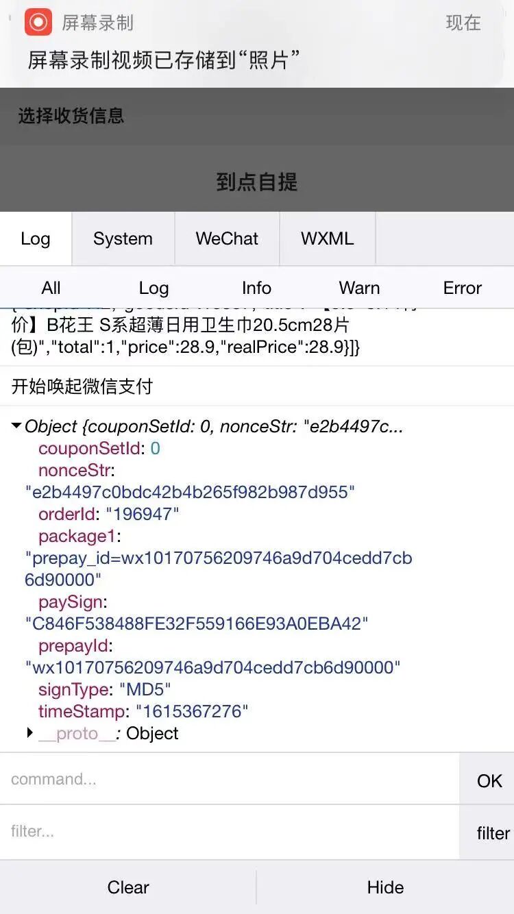 在真机调试时出问题的nonceStr,package,signType,paySign等信息复制在开发者工具内请求wx.requestPayment方法测试,可以正常唤起支付,生成付款的数据应该没问题。