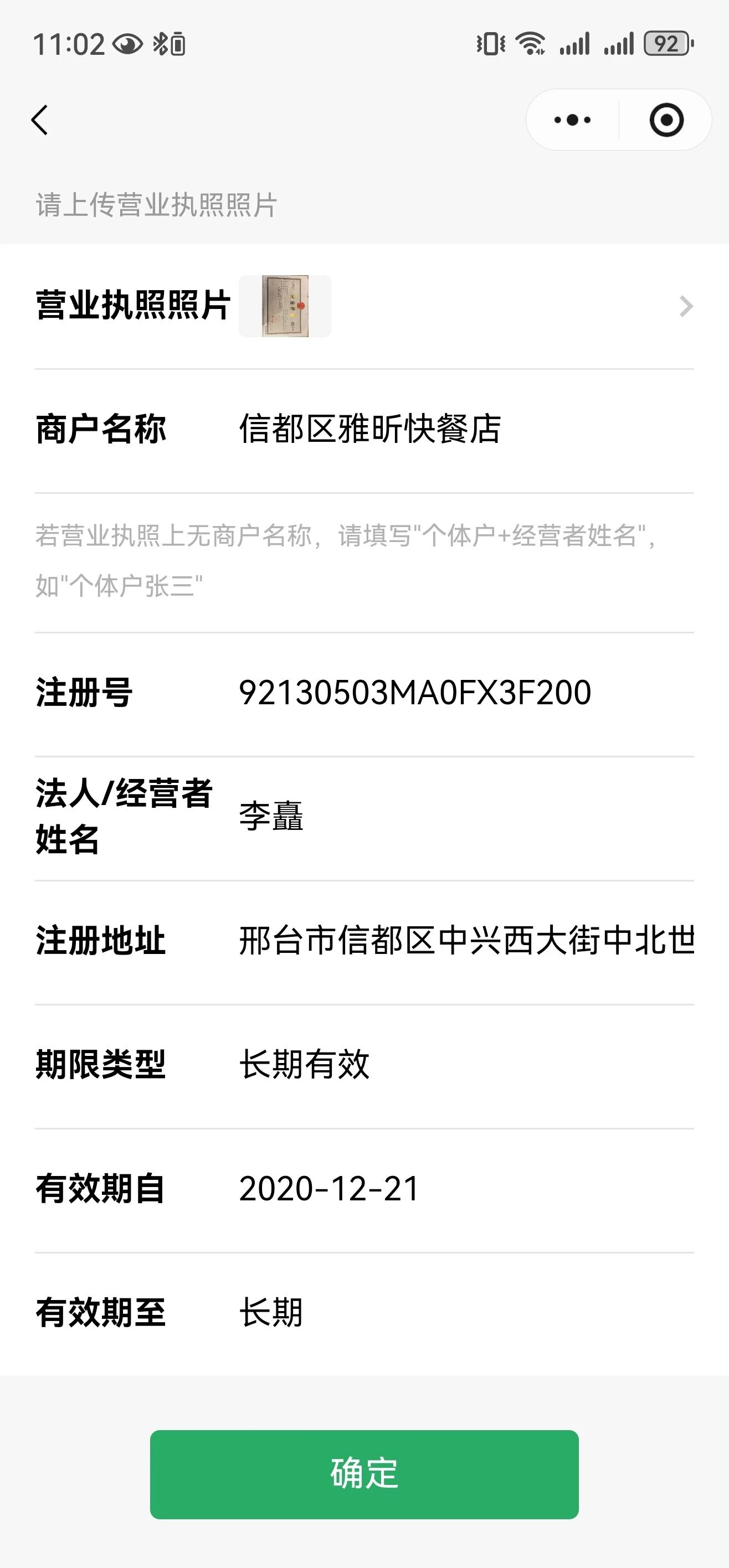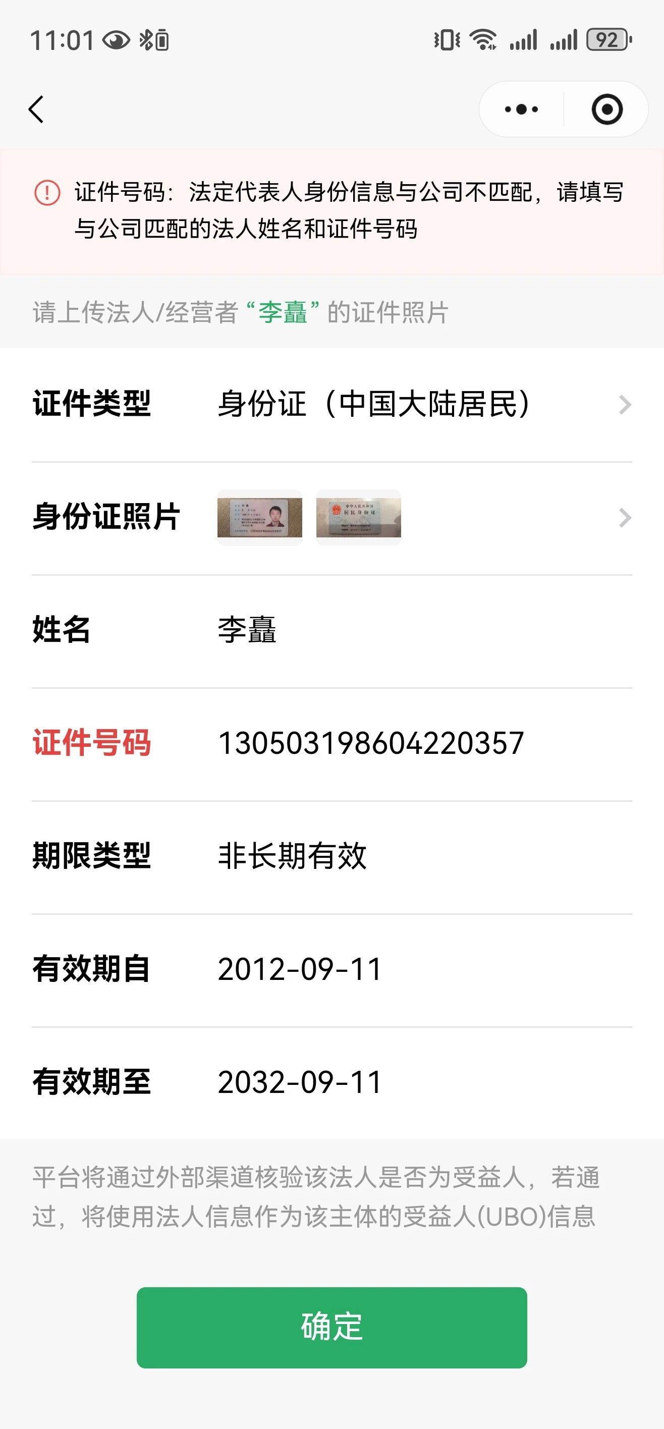身份证号码,姓名,都与营业执照一致,总是申请不通过,被驳回
