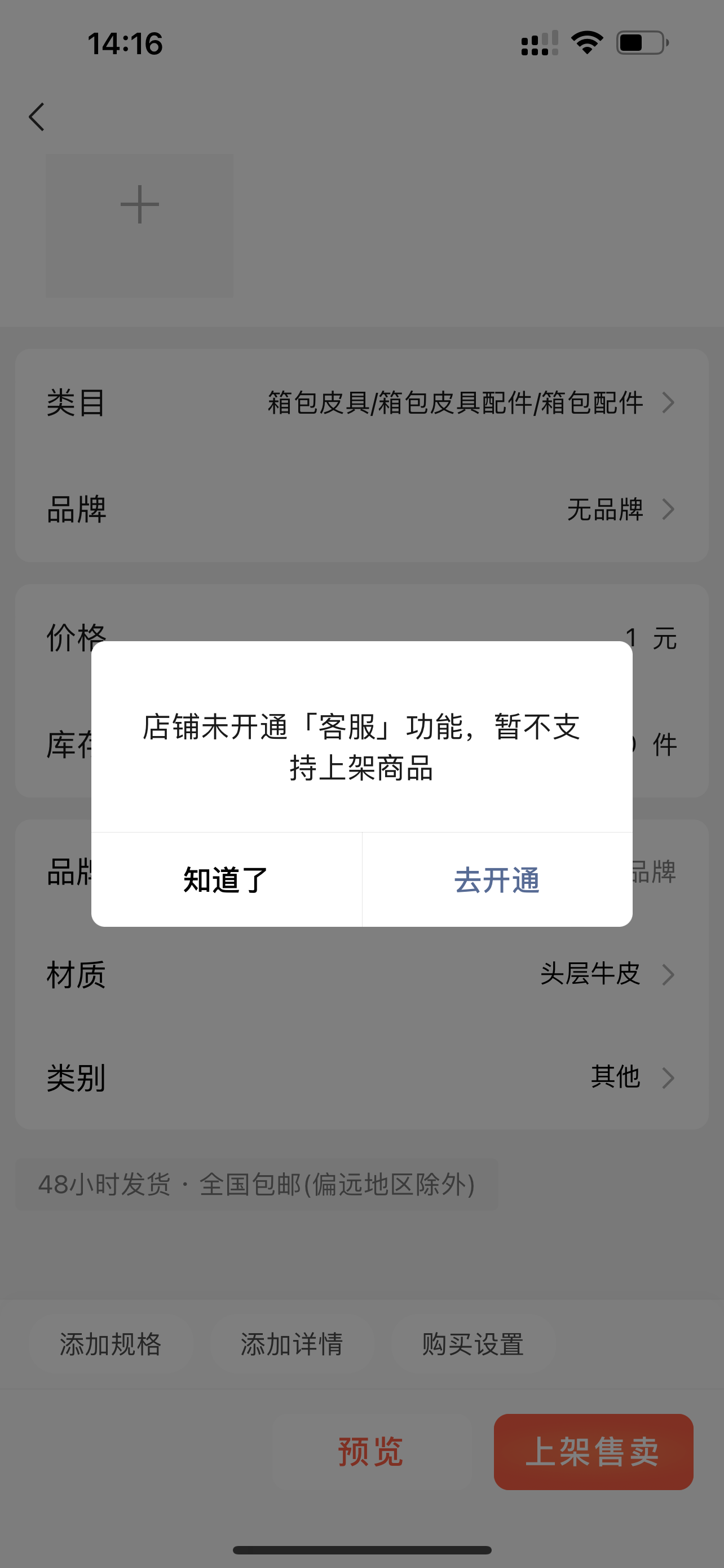 小店里有商品 直播选择店铺就没有商品上架就提示未开通客服不支持上架