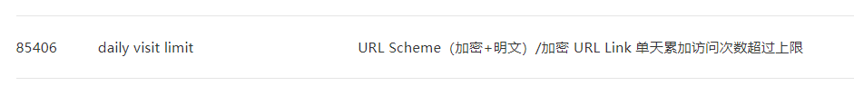 小程序获取加密 URL Link 提示 85406 daily visit limit rid: 69131def-695312d6-5a6aa545 ,但是当日无论是获取链接还是通过链接打开小程序远远没有达到限制,这是什么情况?