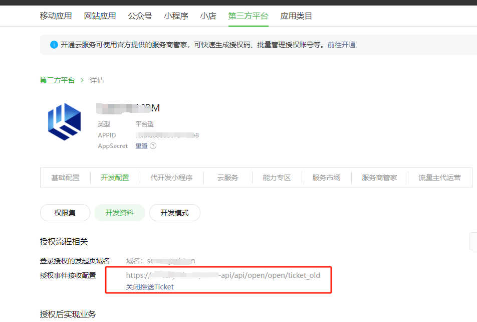 第三方平台--详情--开发配置--开发资料,授权事件接收配置,只能配置一个url,如果多环境部署,就只有一个环境可以接收到ticket,其他环境该如何处理