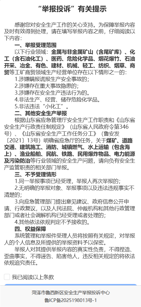 菏泽市鲁西新区安全生产举报投诉中心页面,并无存在恶意营销等,我们严格遵守相关法律法规,确保所有数据的使用合法合规。