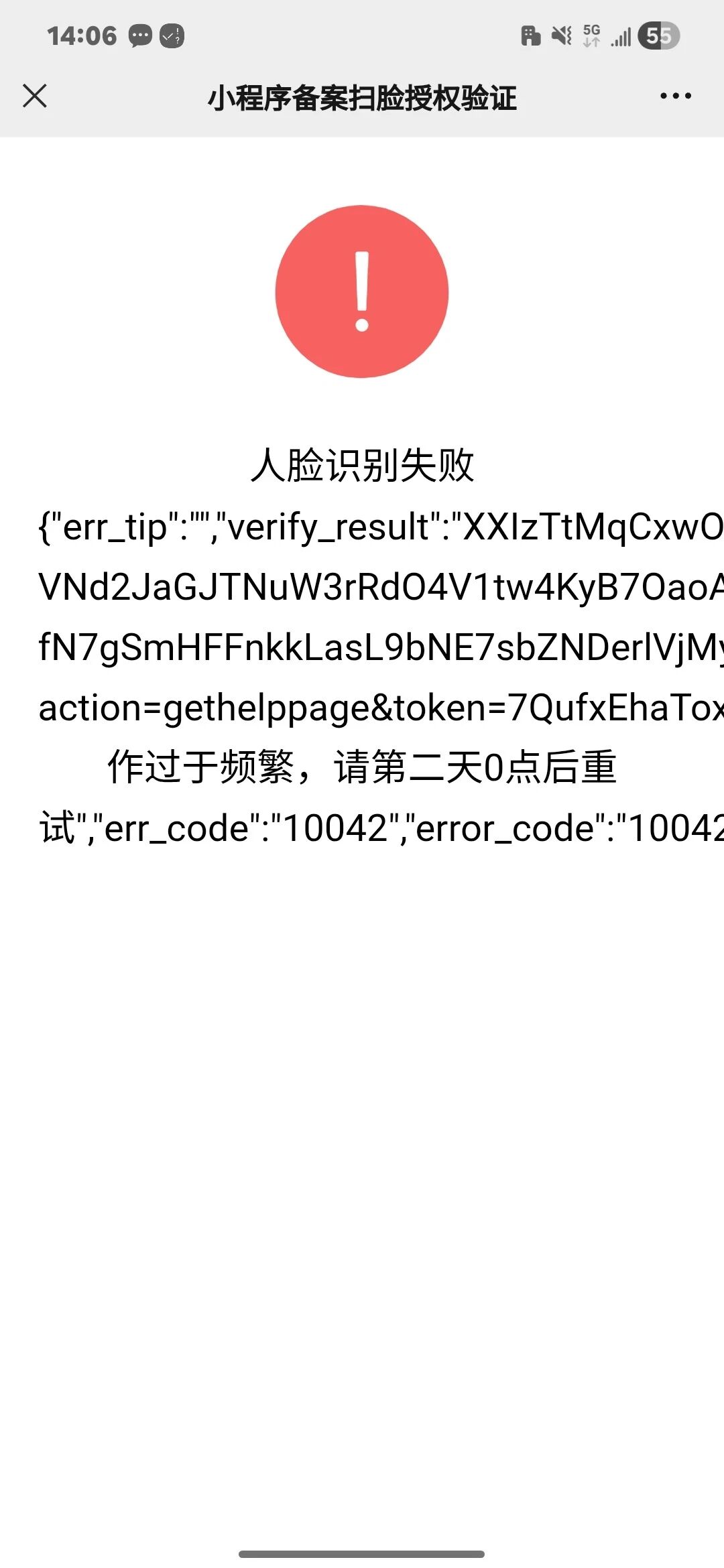 微信小程序陪备案扫脸验证 每次人脸验证都是人脸识别失败 请第二天再试我只扫了一次连就频繁为什么?