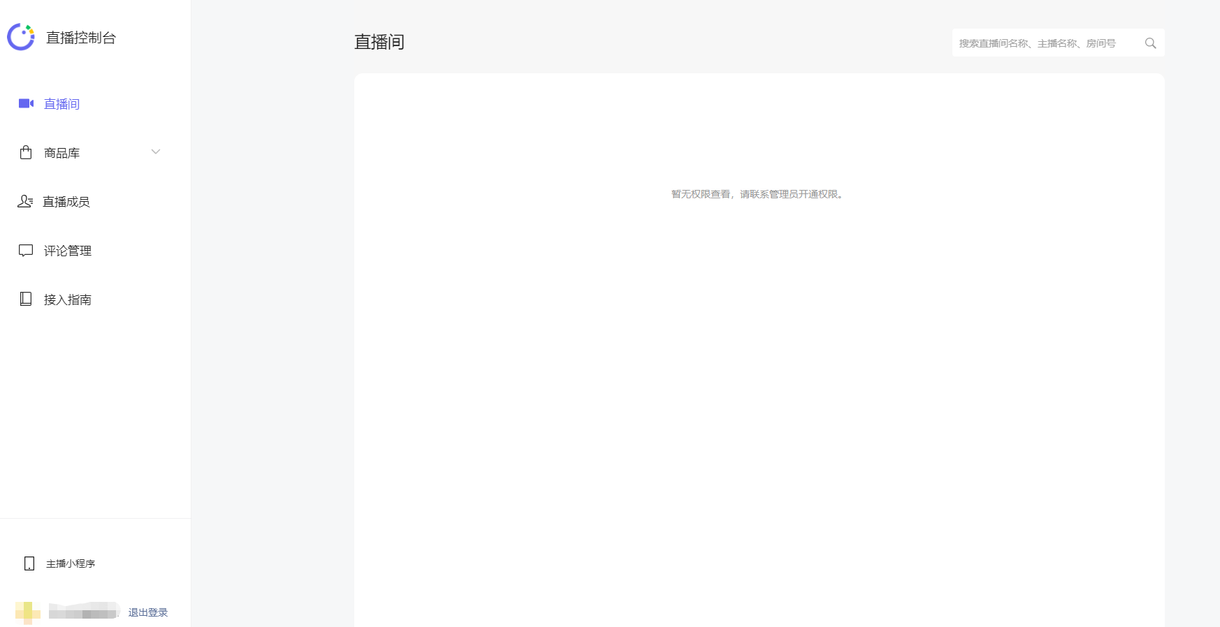 小程序后台权限配置全部开通,运营者、开发者、数据分析者(基础分析)、数据分析者(交易分析)四个权限都打开,进入后台管理系统,点击直播提示无权限;