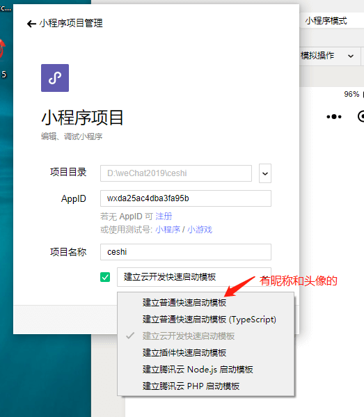 创建项目的时候模板选错了,那个默认模板是云开发的模板