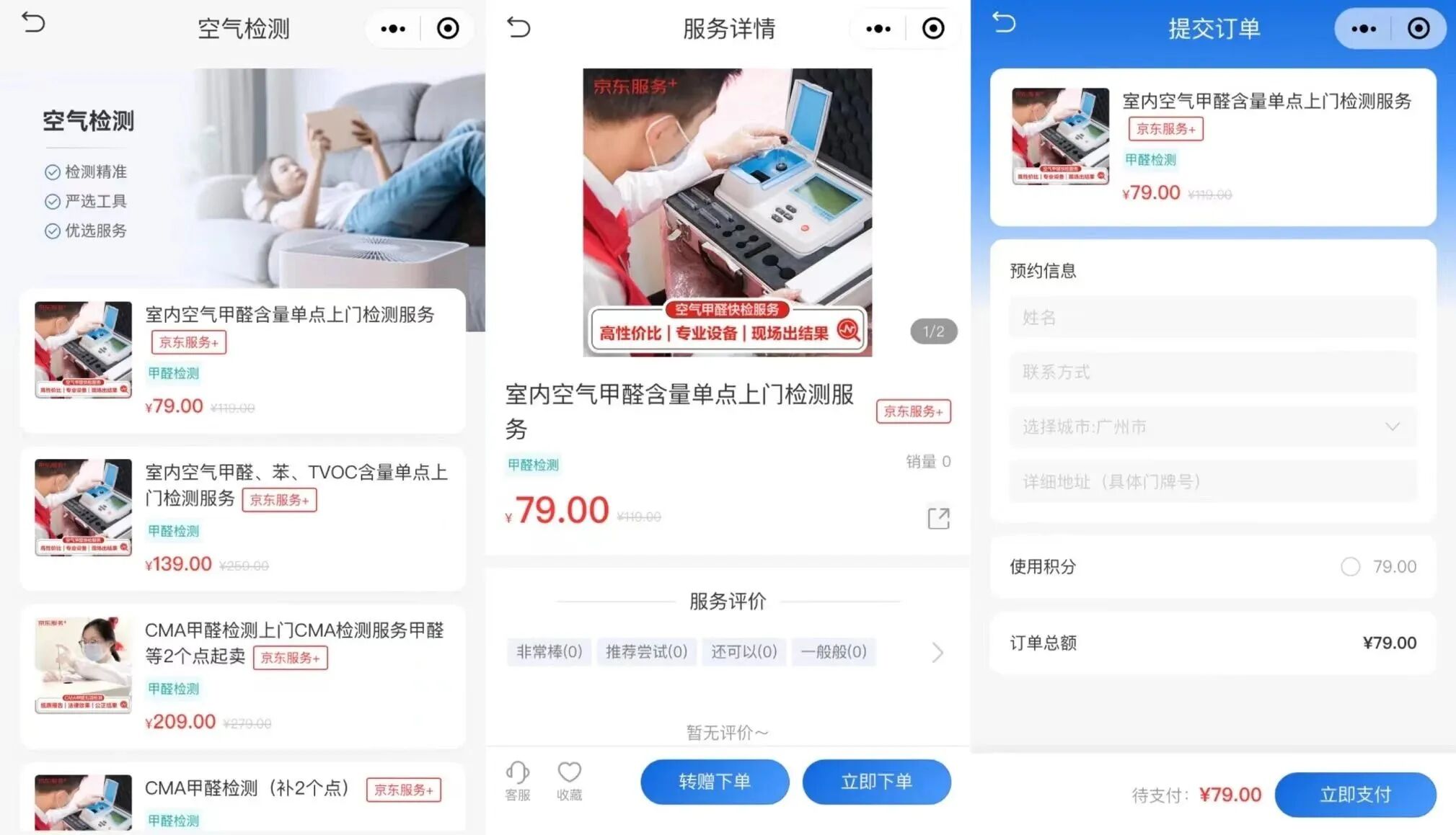 2.小程序涉及提供农作物质量检测、空气质量检测、环境质量检测、甲醛检测等服务,请补充选择:商业服务-质量检测类目。