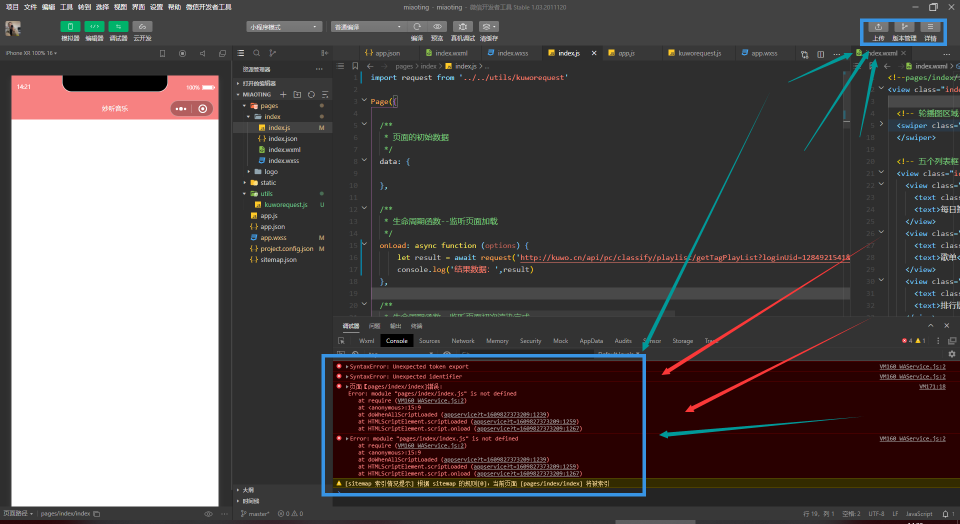 Error: module "pages/index/index.js" is not defined