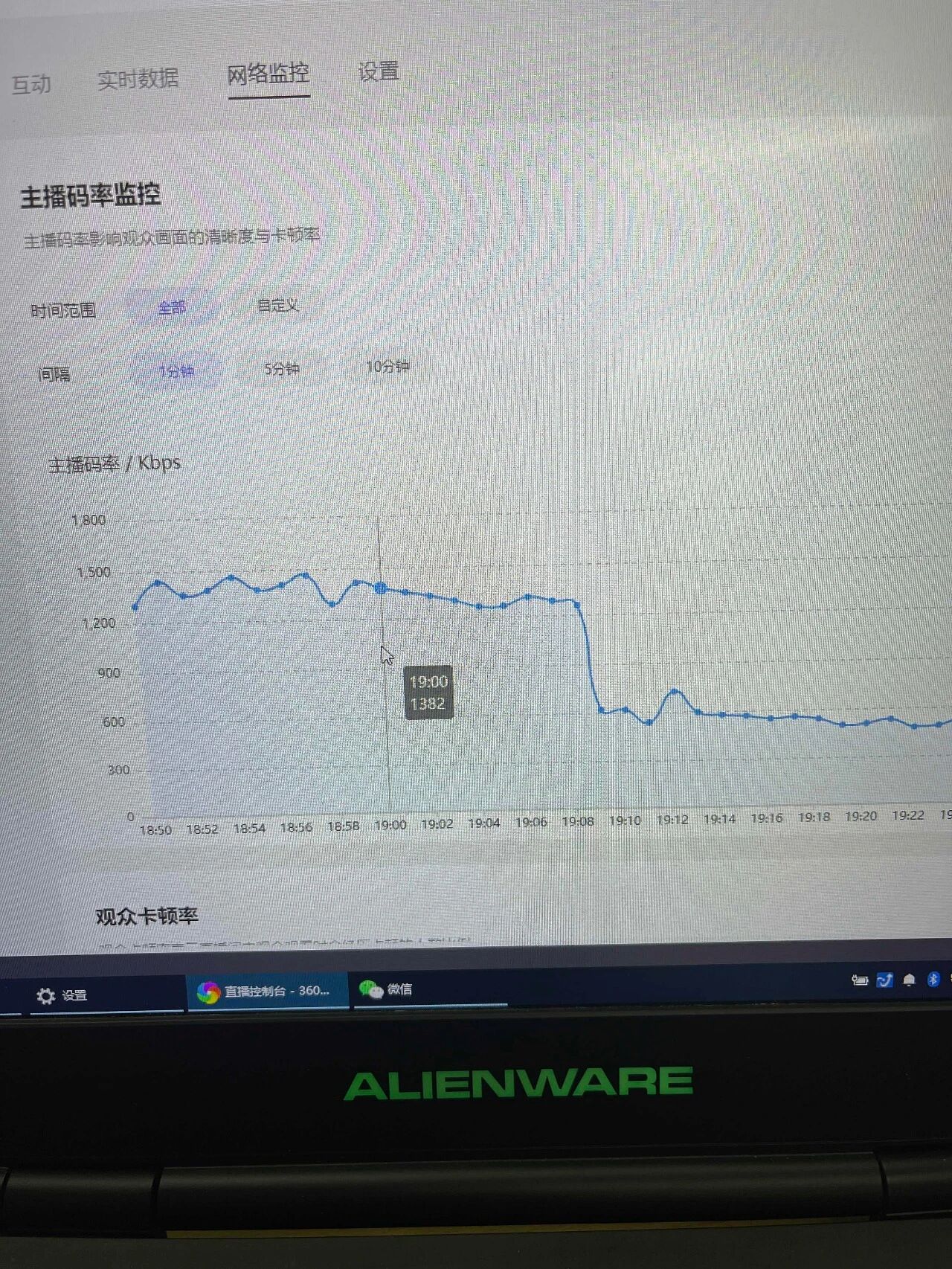 你好,看问题描述和码率监控初步判断是网络问题。正常手机直播码率应该维持在1800kbps左右