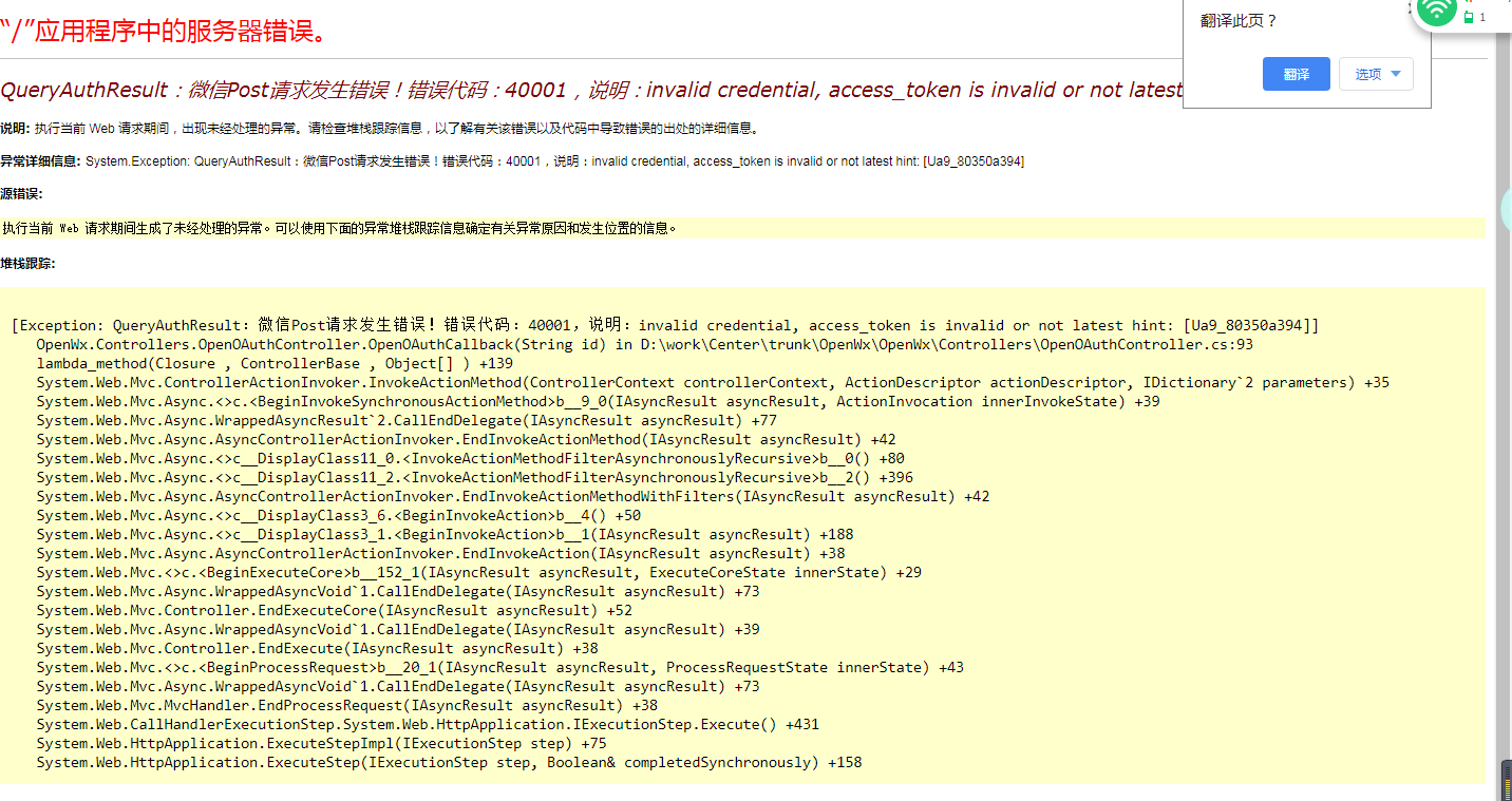 微信公众平台绑定微赞平台后,造成微赞直播平台不能正常使用。错误代码是40001。如何解决?